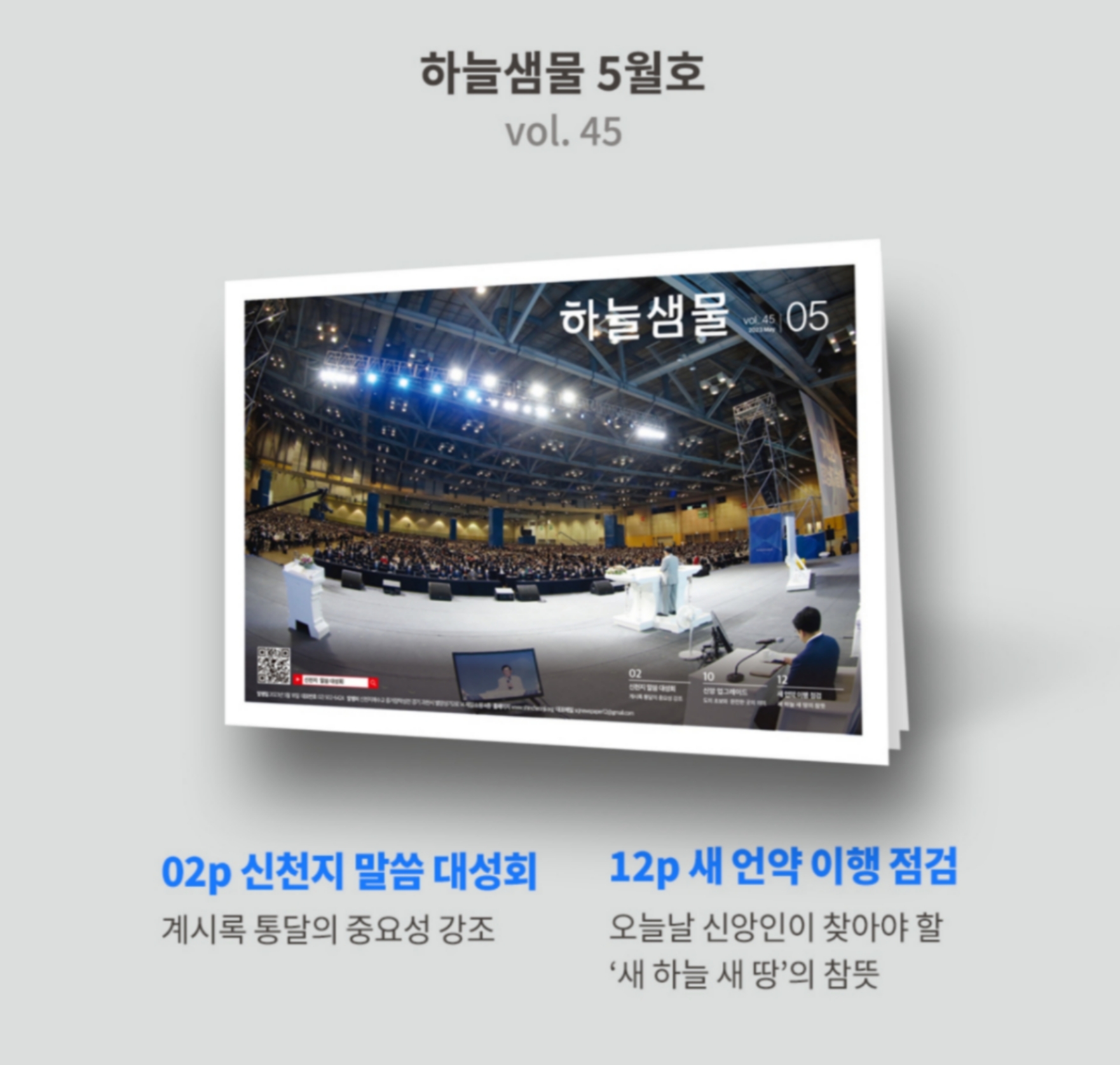 신천지 10만 수료식(말씀 : 이만희 총회장님, 사회 : 고동안 총무, 기도 : 이기원 요한지파장)에서 "우리나라에 하나님도 천국도 임해오신다. 하나님이 우리나라에 오시기에 좋은 세상이 올 것이다"라는 이만희 총회장님의 말씀이 생각나네요.
